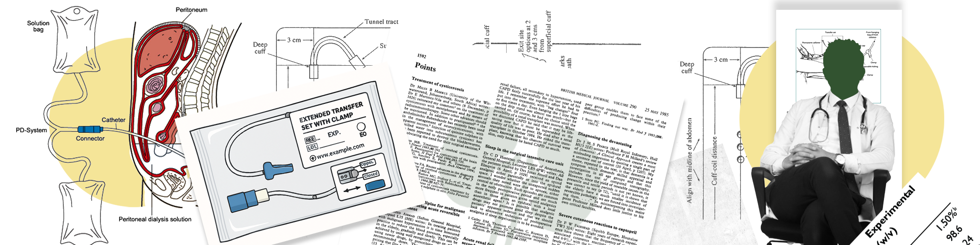 A cut is made under general anesthesia below the belly button and the catheter is sent through this cut into the peritoneal cavity. The cut is closed by sutures and it is tested by using saline to check for any leakages. PD catheters are available in various shapes consisting of a flexible silicone tube with an open end and any side holes. Two cuffs are present in the tube to hold the catheter in place and to ward off infection.